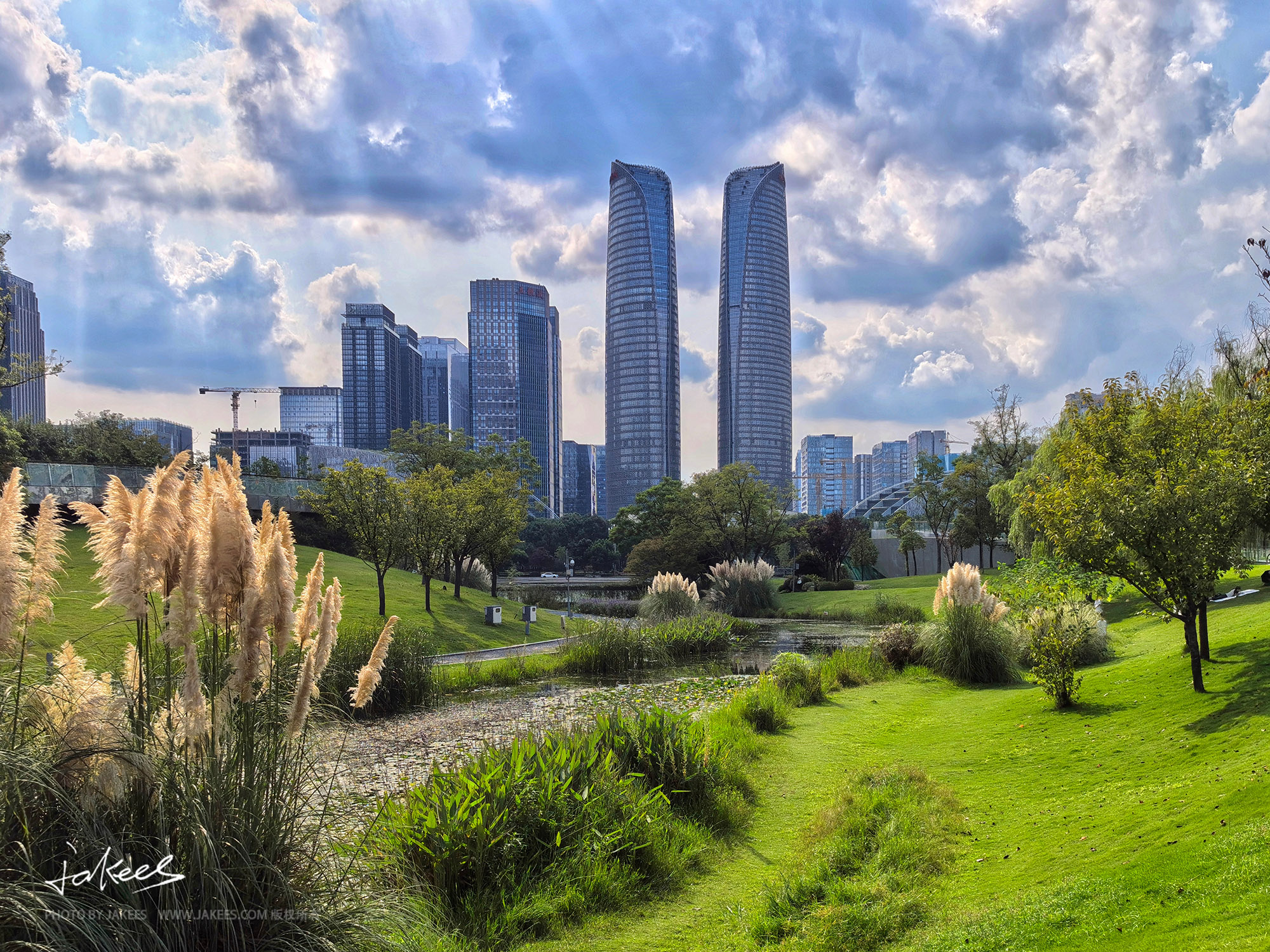 成都人私藏的金融城秘境!交子公园从小水塘扩到跨江,双子塔航拍绝了,可惜没等到落日
