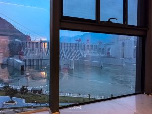 踏上观景的步道,西侧又是另一幅景象尚等不及走到末端的观景平台,就能看到那高耸双子塔,占据画面的空间